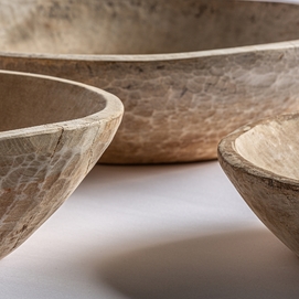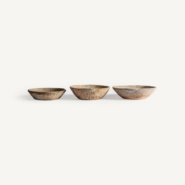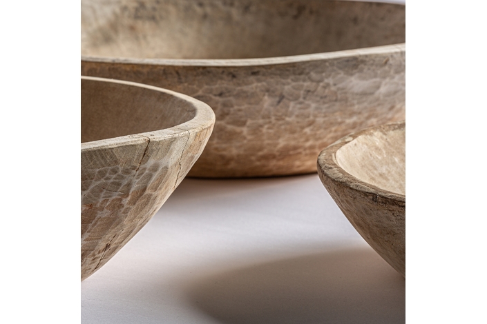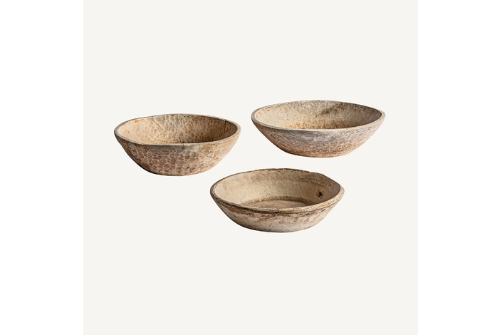 Cuenco surt redondo, en color crema envejecido, de estilo étnico. Fabricado en madera de mango.
