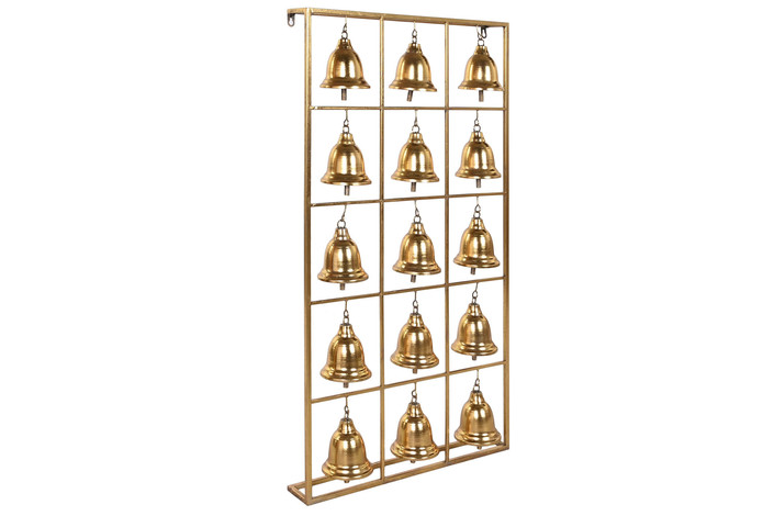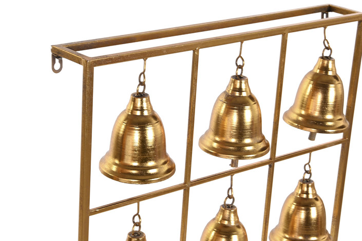 DECORACION PARED METAL 50X10X97 CAMPANAS DORADO