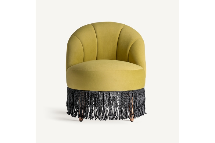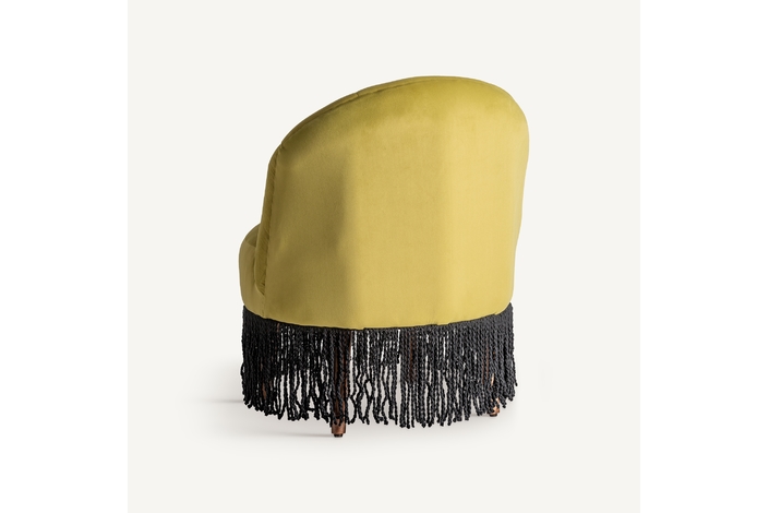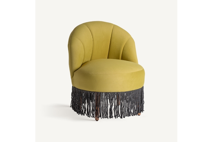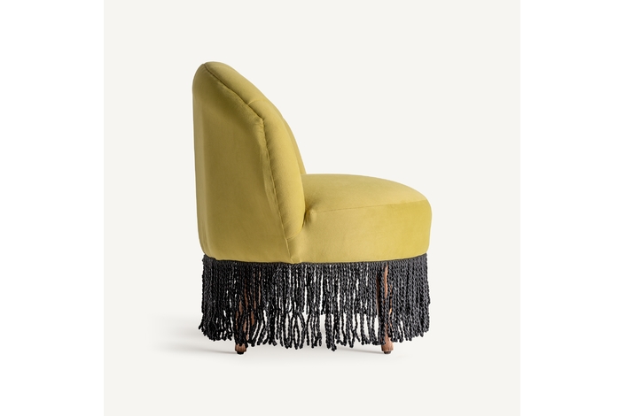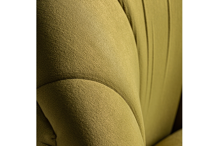Descalzador glace, en color pistacho, de estilo vintage. Fabricado en terciopelo, combinado con madera de pino y espuma.