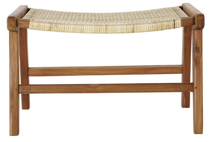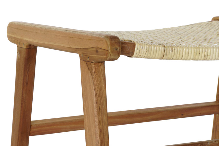 Dimensiones (cm) Longitud 65  |  Fondo 47  |  Altura 40 Peso neto producto (kg) 5,00 Material Teca  |  Ratan
