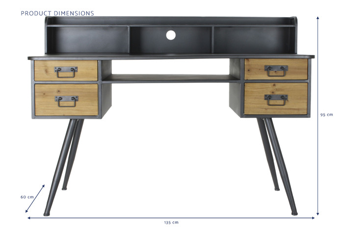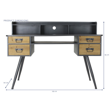 ESCRITORIO ABETO METAL 135X60X95 NEGRO
