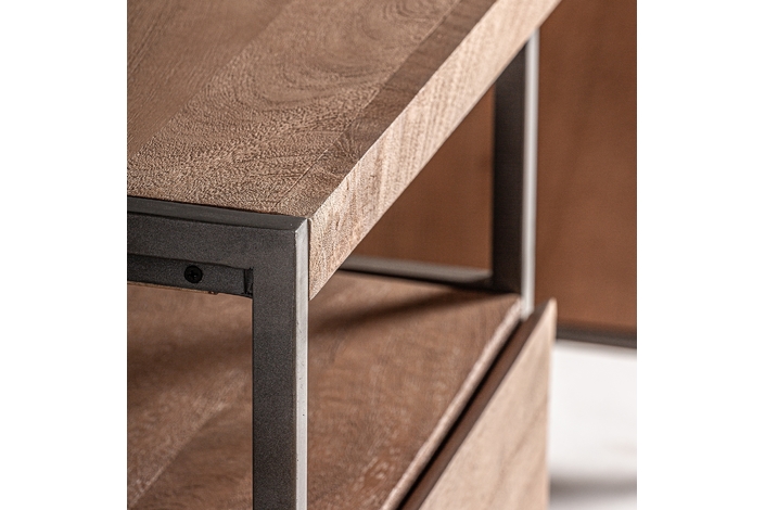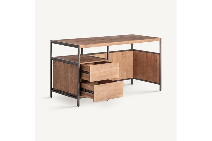 Potencia tu espacio de trabajo con el Escritorio Killeany de VICAL home. Construido con madera de mango y acentos en hierro, representa la perfecta fusión de diseño industrial y natural. Sus dimensiones de 150x60x75cm, junto a su cajonera integrada, lo hacen versátil y funcional. El escritorio industrial con cajonera Killeany ideal para quienes buscan estilo sin sacrificar utilidad.