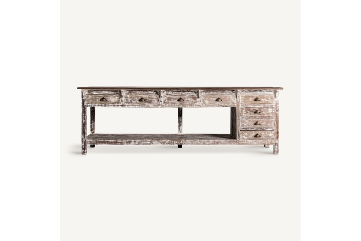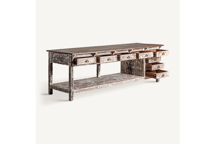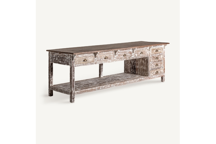 Escritorio malung, en color blanco/marrón envejecido, de estilo rústico. Fabricado en madera tropical.