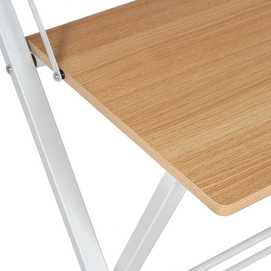 Material: Dm - hierro. Plegable Altura patas hasta tablero: 68cm. Medida leja superior: 80x15cm. Medida tablero: 43x53cm. Precisa montaje.