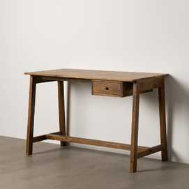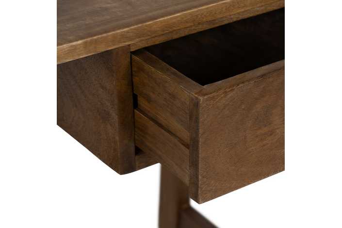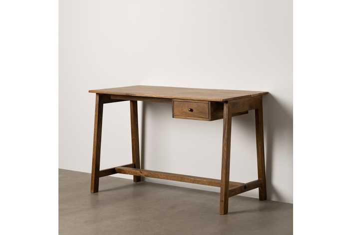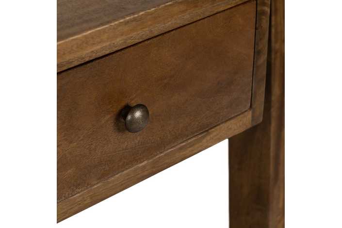 Material: madera de mango. Altura patas: 76,5cm. Distancia entre patas: 117cm. Cajón: 30x10cm. Altura barra: 11,5cm.