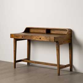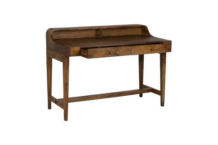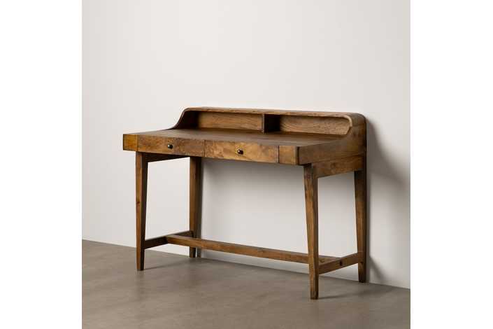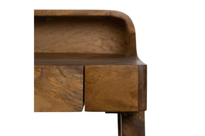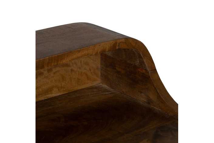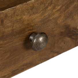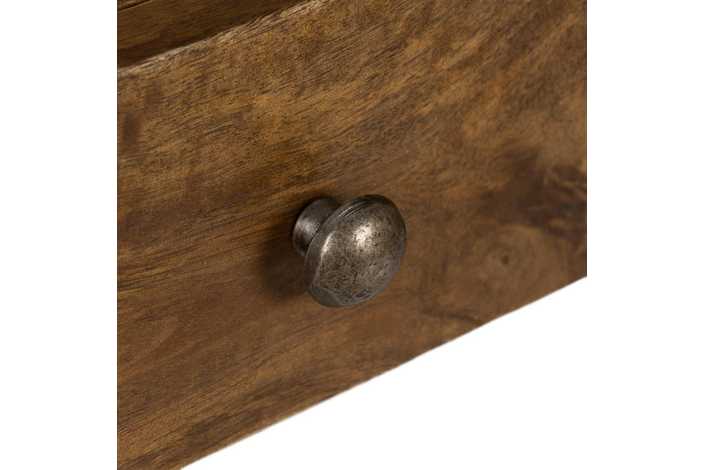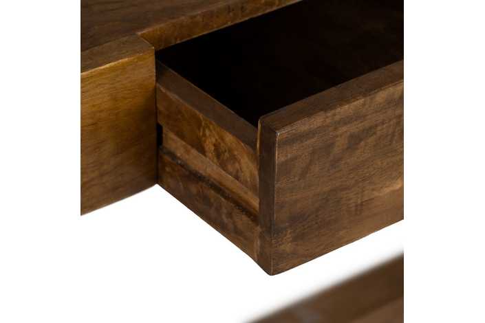 Material: madera de mango. Altura tablero: 77,5cm. Altura patas: 68,5cm. Distancia entre patas: 113cm. Cajones: 49x9cm. Altura barra: 12cm.