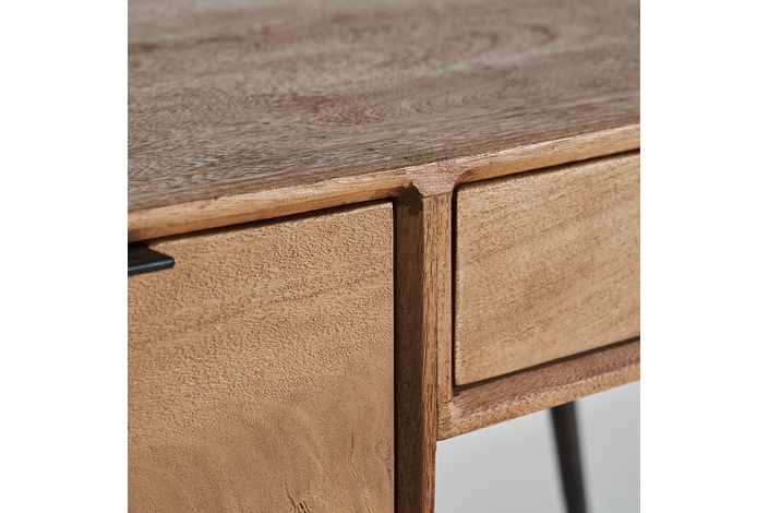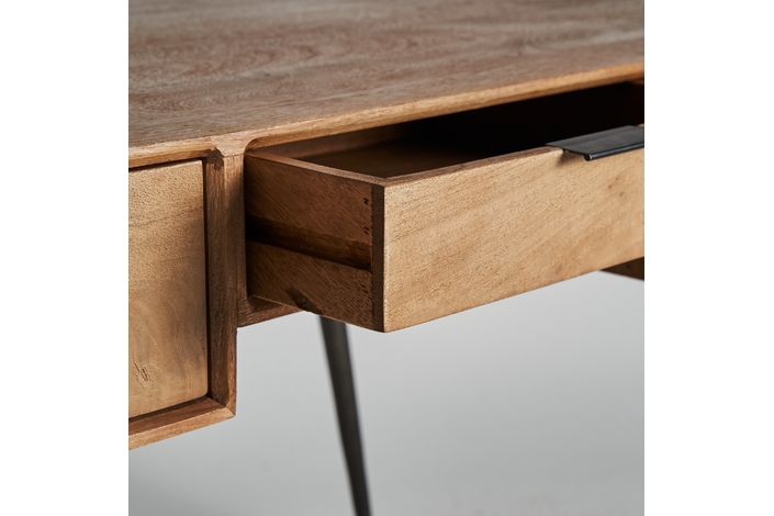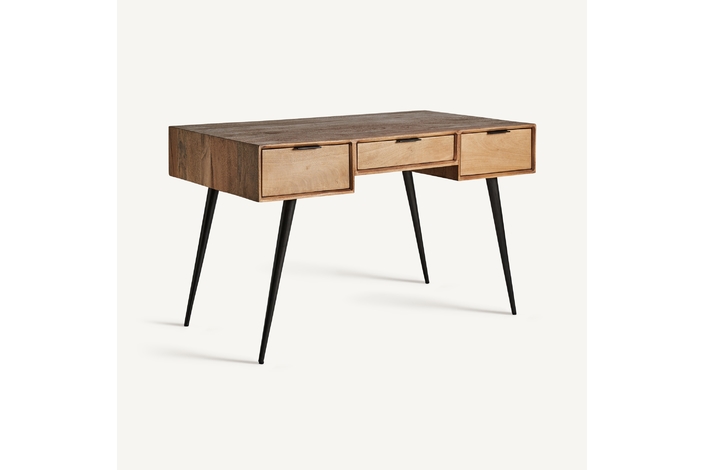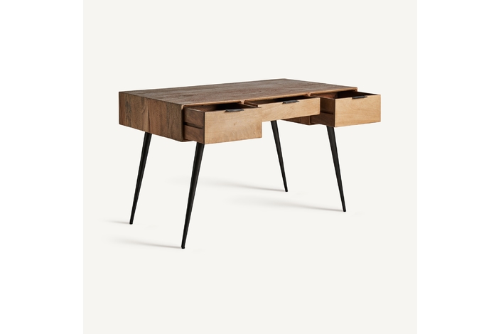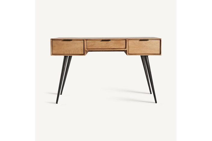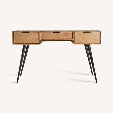 El Escritorio Sered de VICAL home encapsula la elegancia del diseño mid century. Hecho de hierro y adornado con detalles en madera, sus dimensiones de 132x76x79cm lo hacen perfecto para espacios contemporáneos. El escritorio mid century con cajones incorporados ofrecen una funcionalidad adicional, convirtiéndolo en una pieza tanto estilizada como práctica.