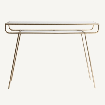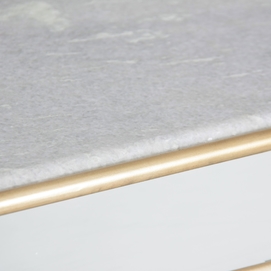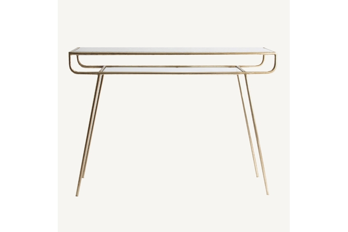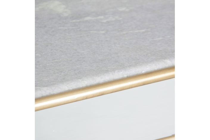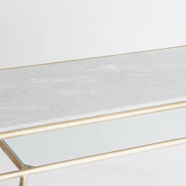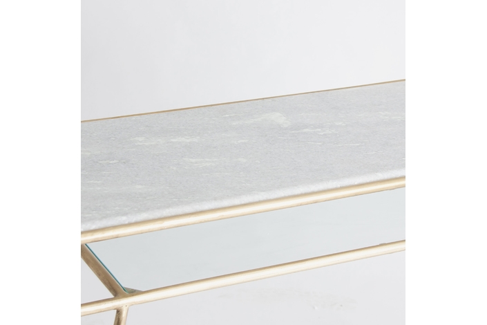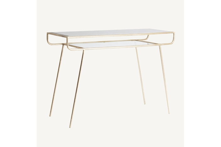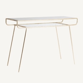 Escritorio wolen, en color blanco/oro, de estilo art deco. Fabricado en acero, combinado con cristal y mármol. Producto desmontable.