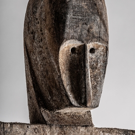 Escultura pie j/2, en color marrón envejecido, de estilo étnico. Fabricado en madera tropical.