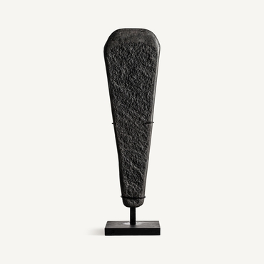 Escultura pie stone, en color negra, de estilo étnico. Fabricado en piedra. Producto desmontable.