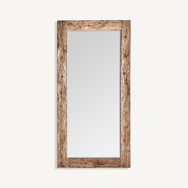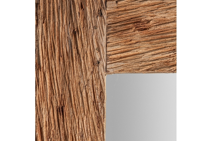 Espejo, en color natural tallado, de estilo contemporáneo. Fabricado en madera durian, combinado con espejo.