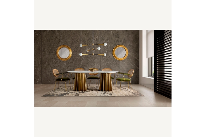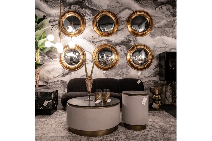 Espejo almesso, en color oro, de estilo clásico. Fabricado en espejo, combinado con resina.