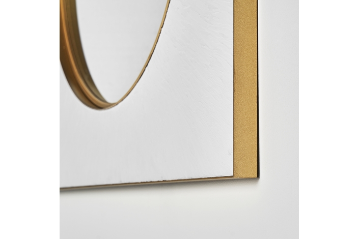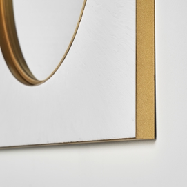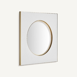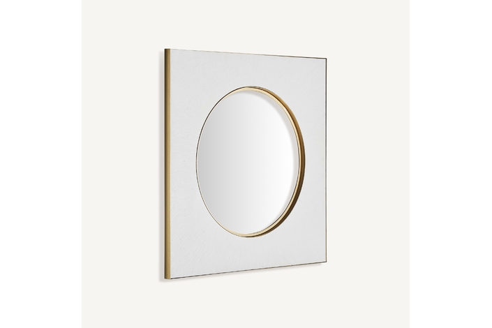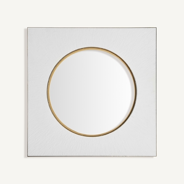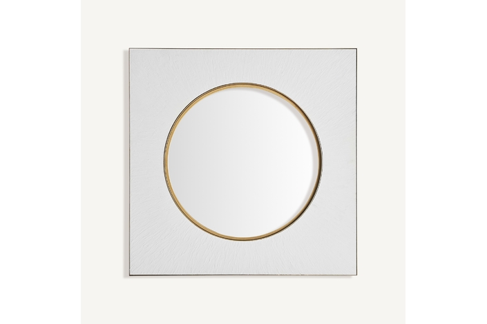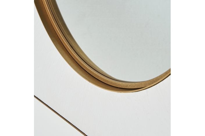 Espejo avery, en color blanco/oro, de estilo art deco. Fabricado en espejo, combinado con hierro y madera dm.