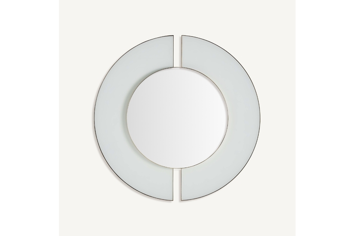 Espejo bahiale, en color blanco/oro, de estilo art deco. Fabricado en espejo.