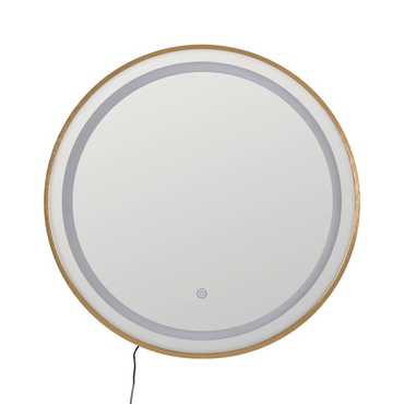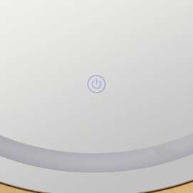 Espejo redondo con iluminación led. Equipado con sensor táctil on/off. Marco de aluminio color dorado de 1cm. Incluye sistema de anclaje. Incluye cable y clavija para enchufe europeo.