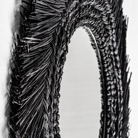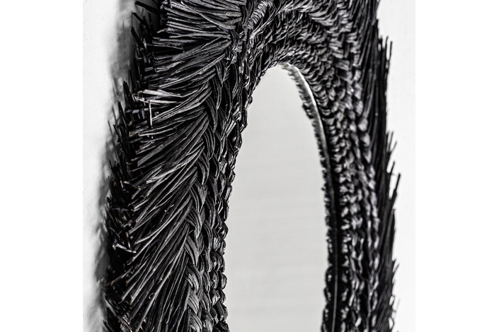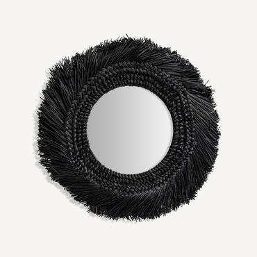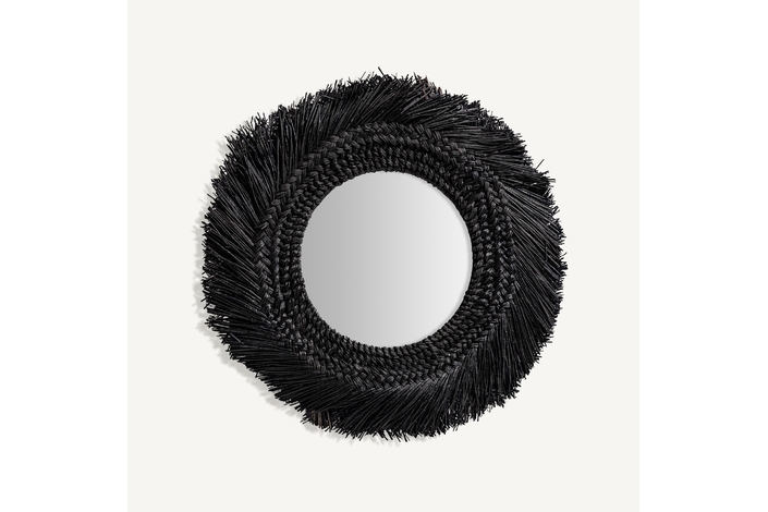 Espejo desouk, en color negro, de estilo contemporáneo. Fabricado en fibra natural.