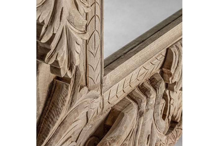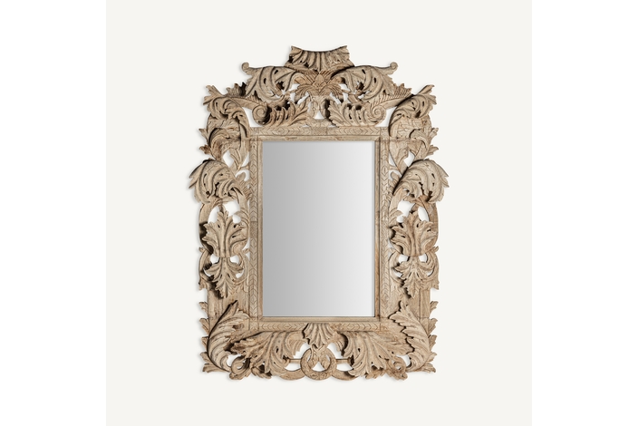 Espejo dianthe, en color marrón, de estilo clásico. Fabricado en madera de teka, combinado con espejo.