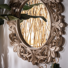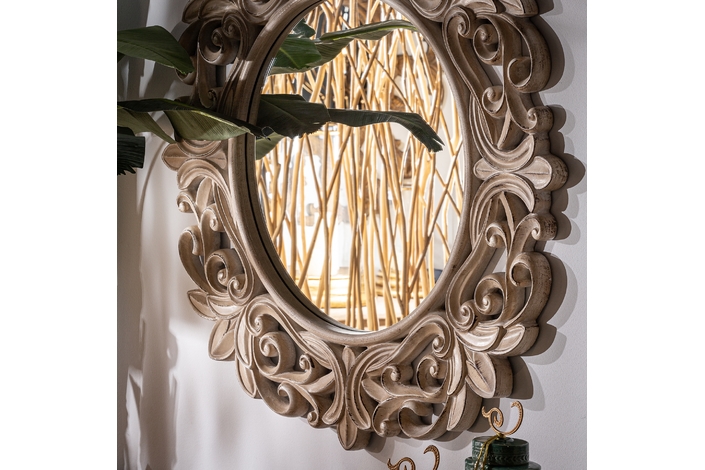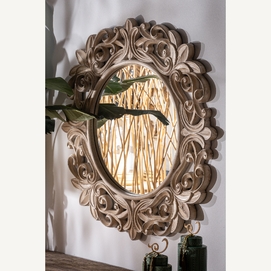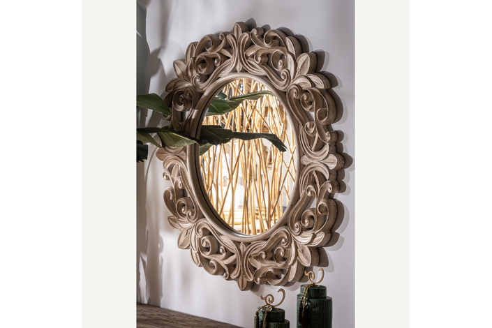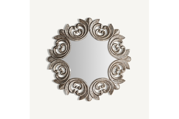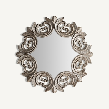 Espejo enna, en color plata envejecido, de estilo clásico. Fabricado en madera tropical, combinado con espejo.