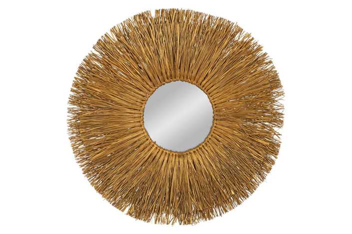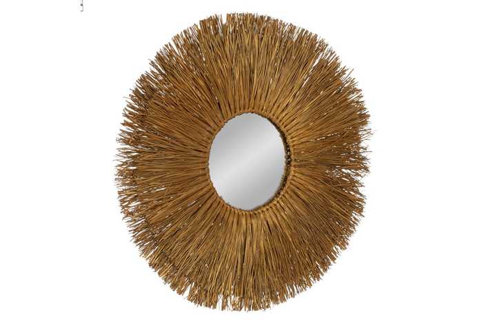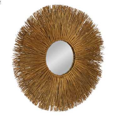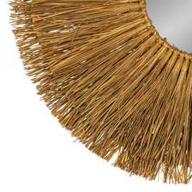 Material: fibra natural. Diámetro interior espejo: 26cm. Incluye colgador para su correcta colocación.