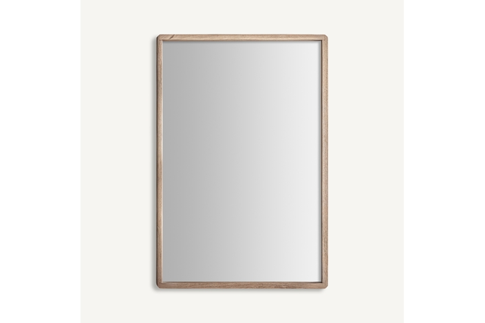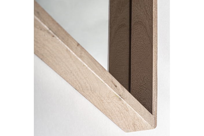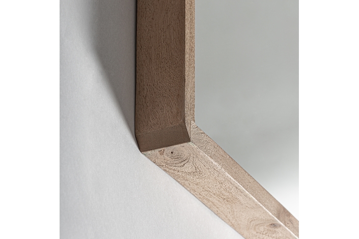 Espejo jacquard, de estilo contemporáneo. Fabricado en madera de mango, en color marrón claro, combinado con espejo.