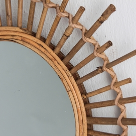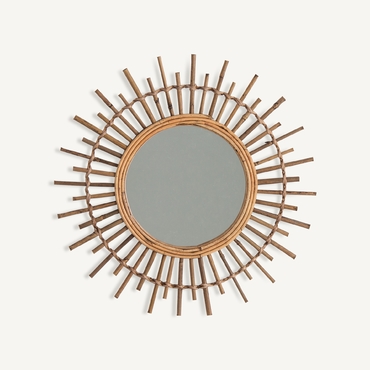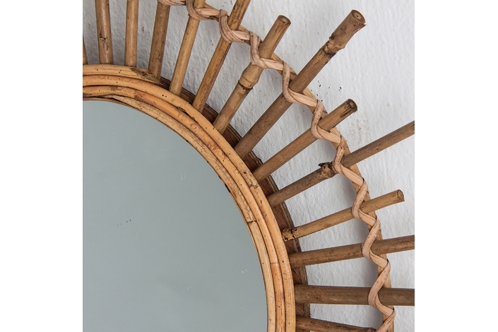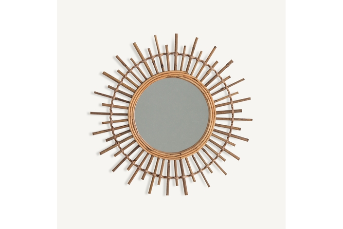 Espejo redondo kai, en color marrón, de estilo contemporáneo. Fabricado en bambú, combinado con espejo.