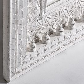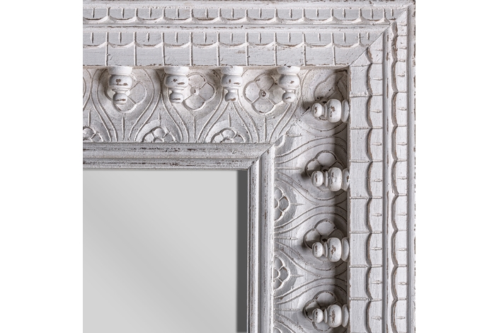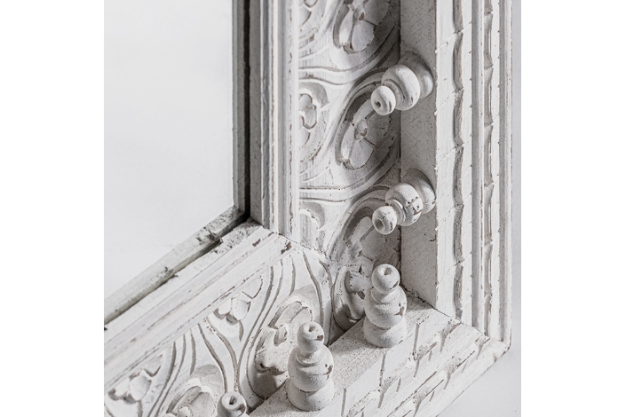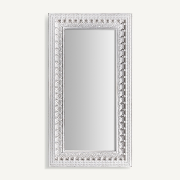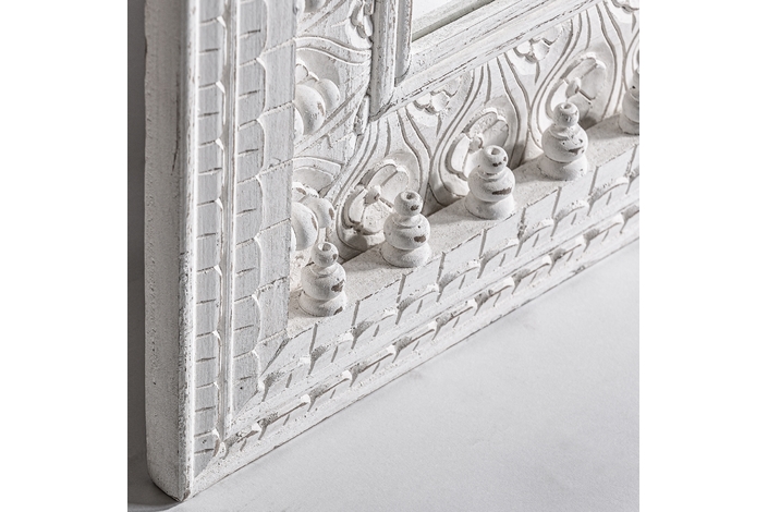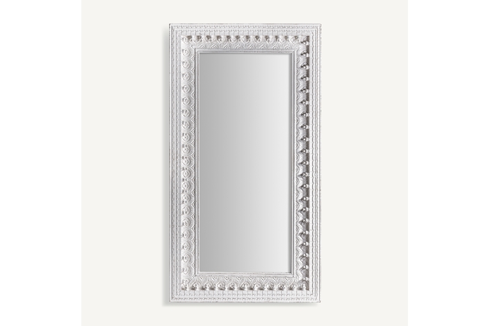 Espejo kanin, en color blanco roto, de estilo provenzal. Fabricado en madera de teka, combinado con espejo.