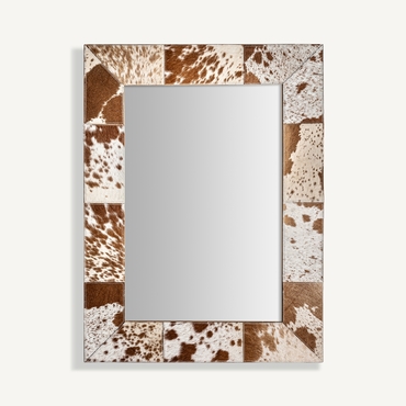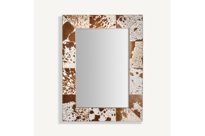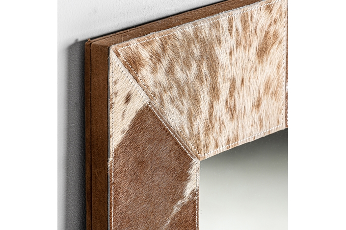 Espejo kenosha, en color marrón/blanco, de estilo nórdico. Fabricado en espejo, combinado con cuero.