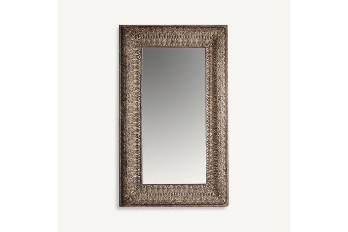Espejo kobu, en color gris envejecido, de estilo vintage. Fabricado en resina, combinado con espejo.