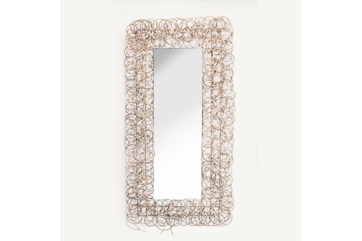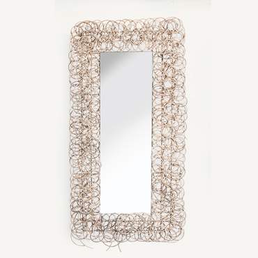 Espejo rectangular lezbur, en color marrón, de estilo contemporáneo. Fabricado en ratán, combinado con espejo.