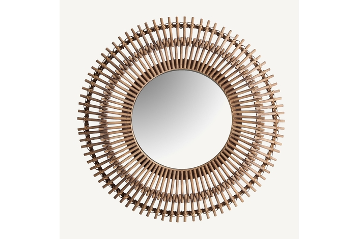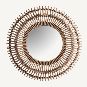 Espejo redondo mauren, en color marrón, de estilo contemporáneo. Fabricado en bambú, combinado con espejo.