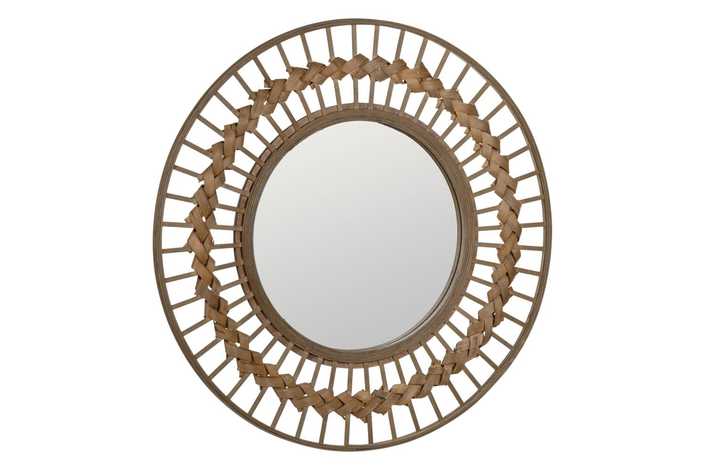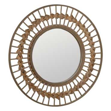 Material: bambú - cristal. Diámetro interior espejo: 42,5cm. Incluye arandela para colgar.