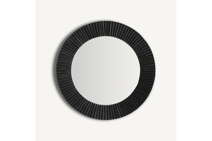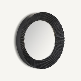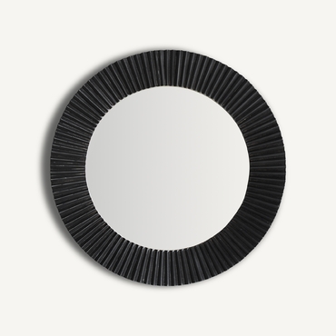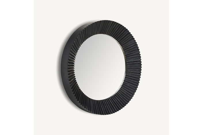 Espejo plissé wood, en color negro, de estilo art deco. Fabricado en madera de mango, combinado con espejo.