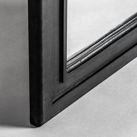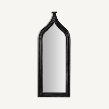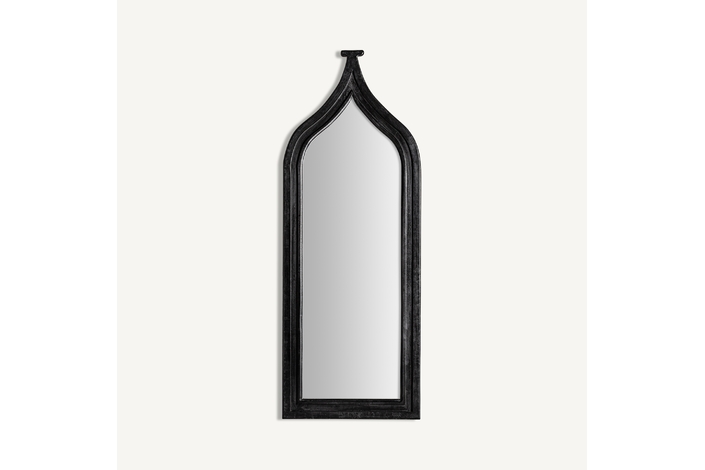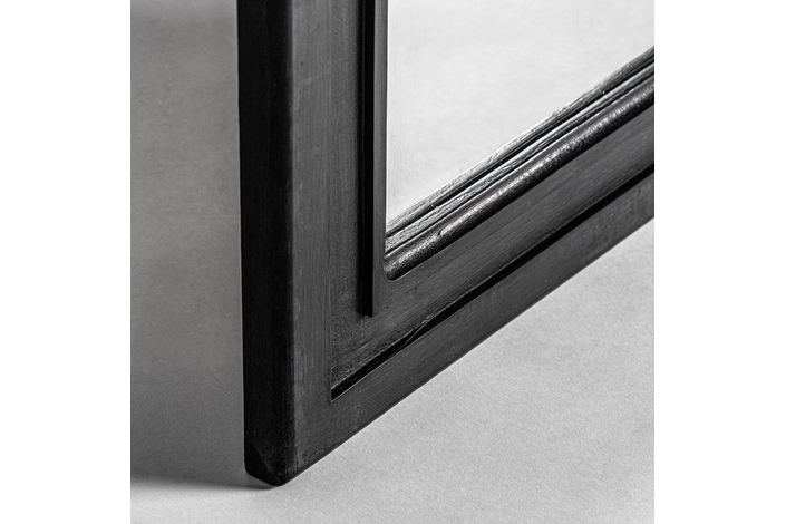 Espejo riesi, en color negro envejecido, de estilo clásico. Fabricado en espejo.