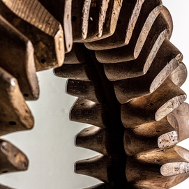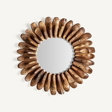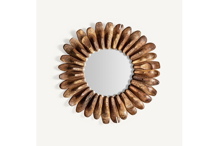 Espejo roth, en color marrón envejecido, de estilo étnico. Fabricado en madera de mango reciclada, combinado con espejo.