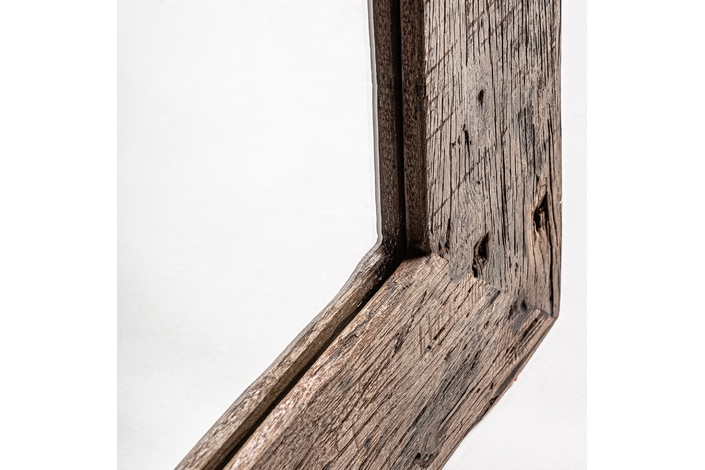 Espejo samsun, en color marrón, de estilo colonial. Fabricado en madera recuperada, combinado con espejo.