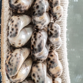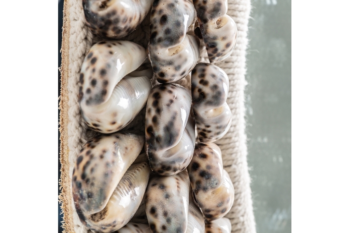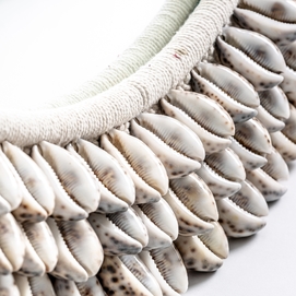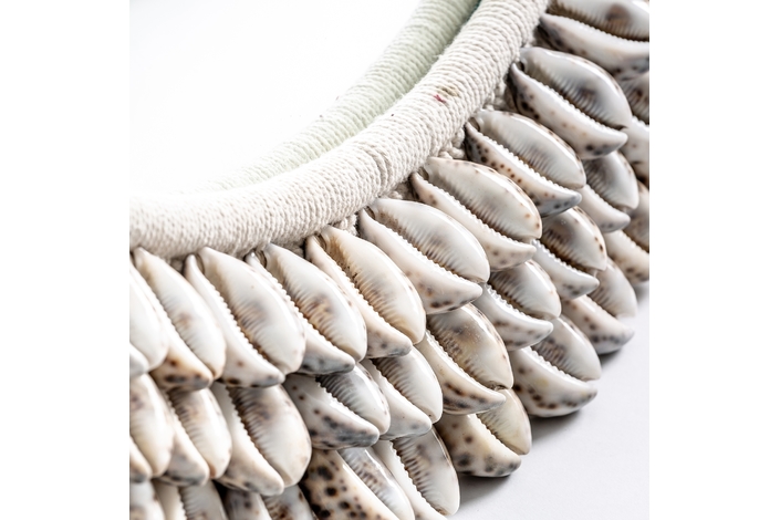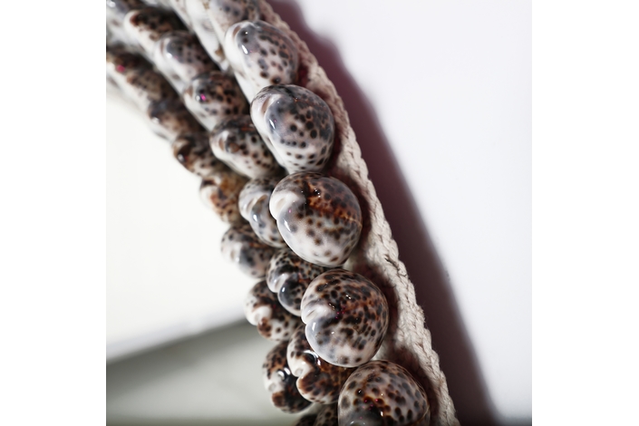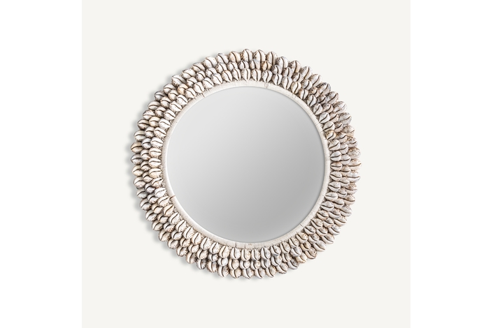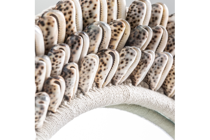Espejo tholy, en color blanco roto, de estilo nórdico. Fabricado en concha, combinado con espejo.