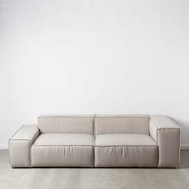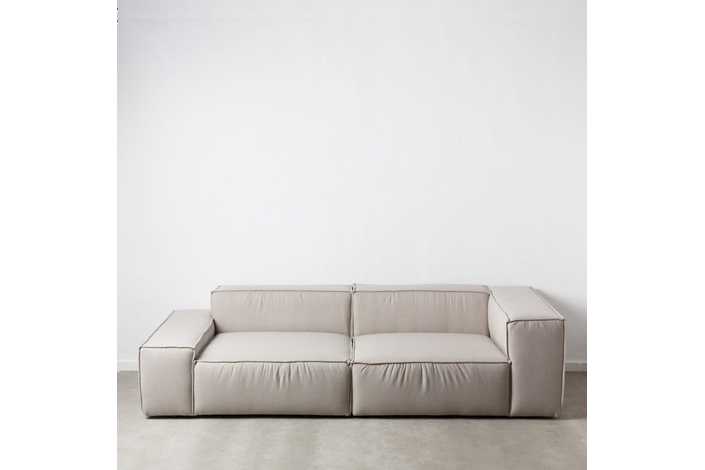 Material: Tejido 100% poliéster. Estructura: Madera. Relleno: Foam 30kg/m3. Altura asiento: 40cm. Altura respaldo: 32cm. Profundidad asiento: 95cm. Altura reposabrazos: 68cm. No desenfundable.