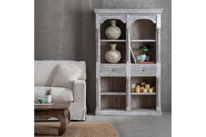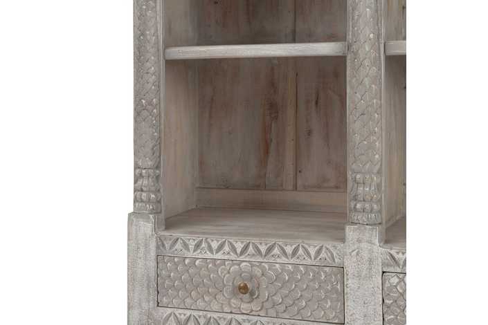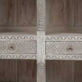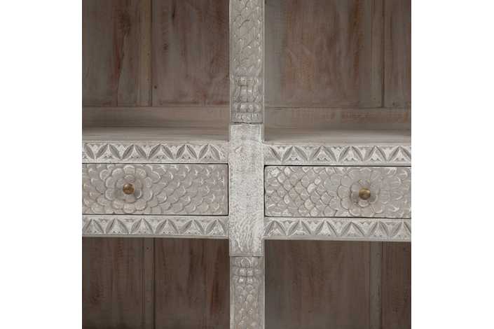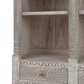 Material: madera de mango. Medida cajones: 44x11cm. Altura baldas inferiores: 28/29cm. Altura baldas superiores 39/40cm.