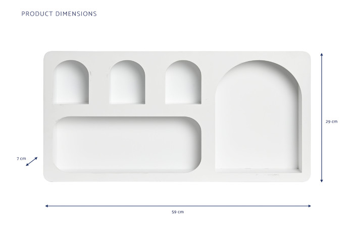 Dimensiones (cm) Longitud 59  |  Fondo 7  |  Altura 29 Peso neto producto (kg) 1,50 Material Mdf