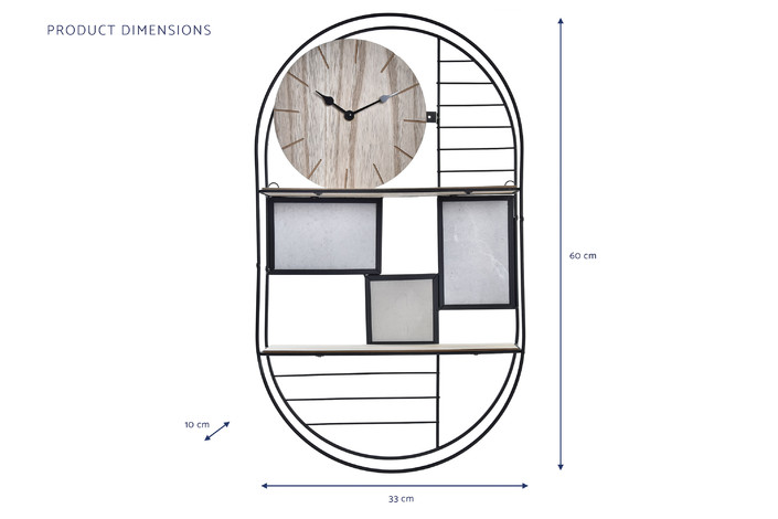 ESTANTERIA PARED METAL MADERA 33X10X60 RELOJ FOTOS