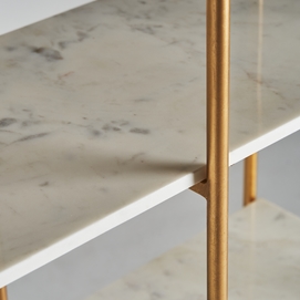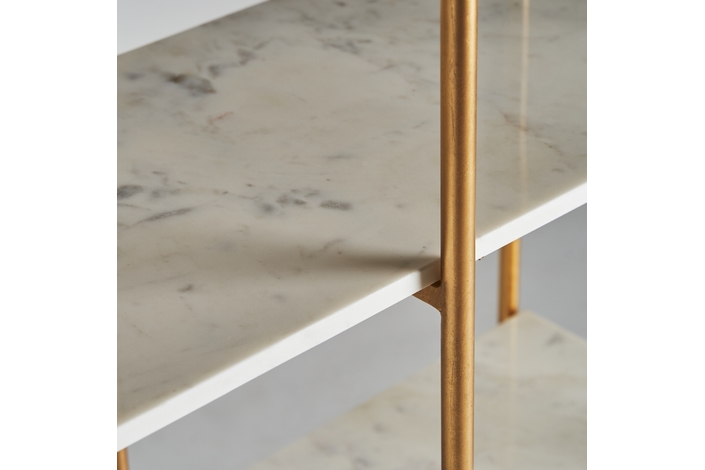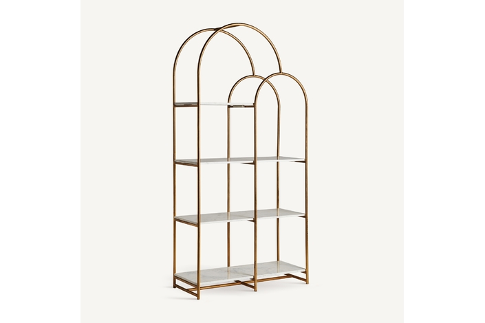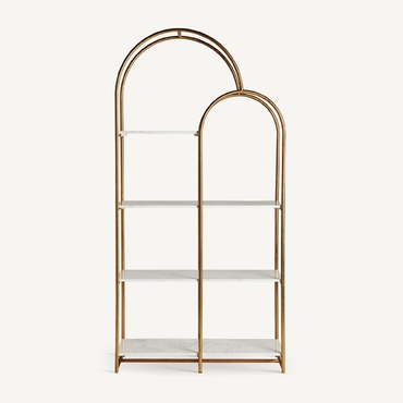 Estanteria sursee, en color blanco/oro, de estilo art deco. Fabricado en mármol, combinado con hierro. Producto desmontable.
