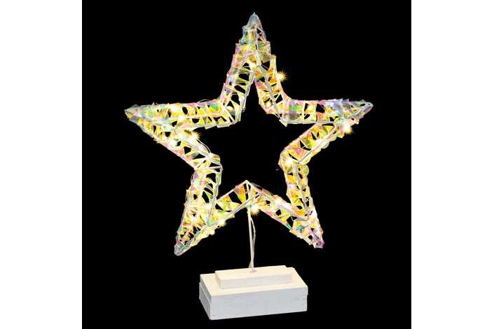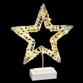 CONTIENE 35 MICRO-LEDS DE LUZ CÁLIDA. FUNCIONA CON PILAS: 2 X AA (NO INCLUIDAS). IP20 (SOLO USO INTERIOR). PEANA DE MADERA: 12 X 7 X 5 CM.