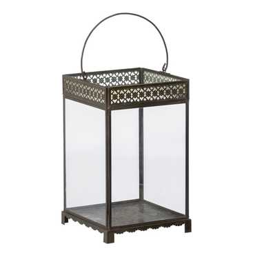 FAROL PORTAVELAS ORO VIEJO CRISTAL-METAL 18 X 18 X 29 CM
