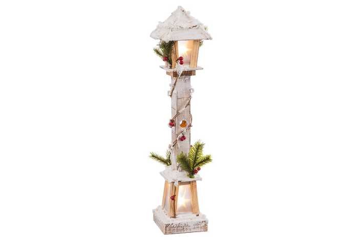 FAROLA CON LUZ MADERA 12 X 12 X 60 CM