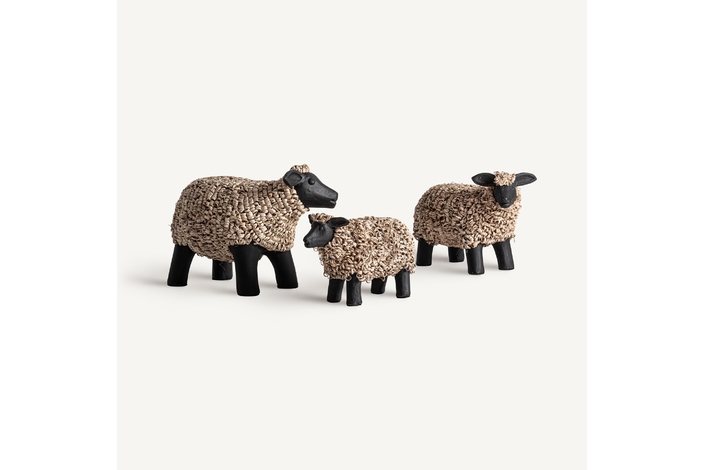 Figura animal j/3 Reva de estilo rústico, fabricado en terracota en color negro con acabado mate, combinado con rafia en color beige con acabado artesanal.