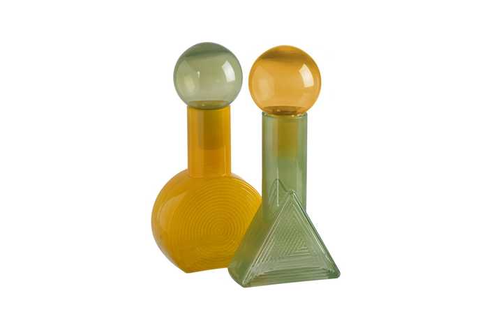 FIGURA BOTELLA VERDE-AMARILLO CRISTAL 15,80 X 15,80 X 33,50