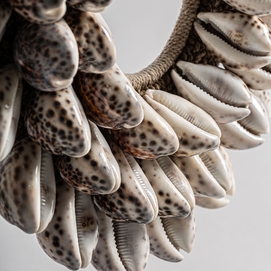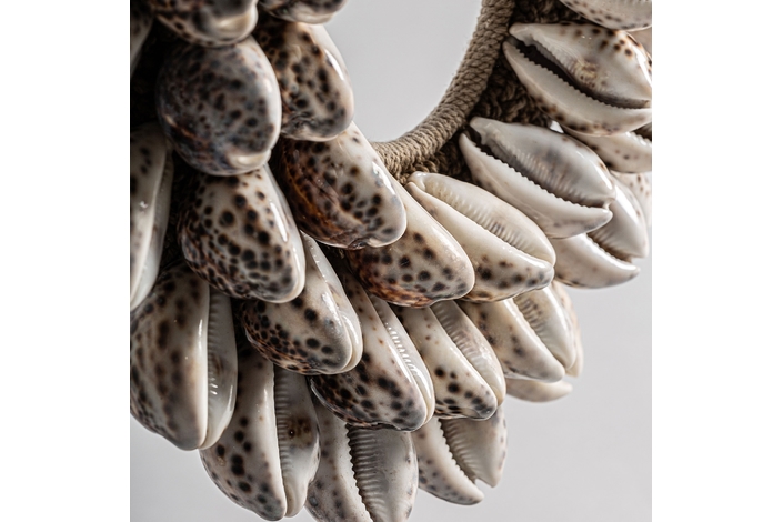 Figura collar inga, en color marfil, de estilo étnico. Fabricado en resina, combinado con concha y hierro. Fibra natural.