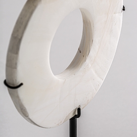 Figura decorativa elisea, en color blanco/negro, de estilo nórdico. Fabricado en piedra, combinado con hierro. Producto desmontable.