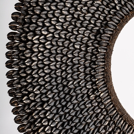 Figura decorativa jedhasea, en color negro, de estilo étnico. Fabricado en hierro, combinado con concha. Producto desmontable.
