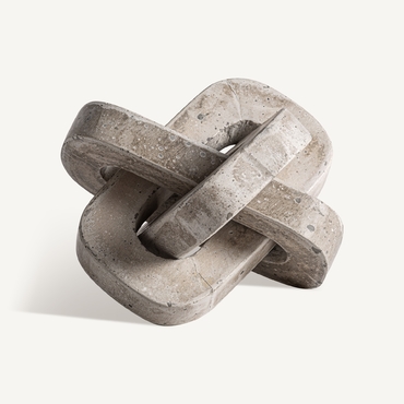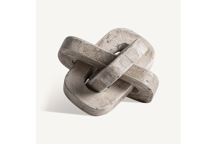 Figura decorativa Nexo de estilo contemporáneo, fabricado en cemento en color beige, combinado con arena.